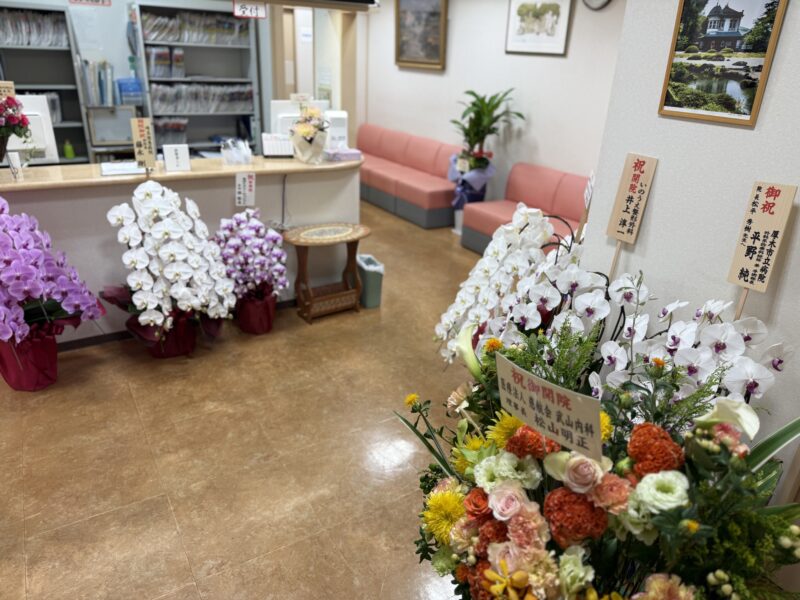 院内はお祝いのお花で華やかな雰囲気になっております。