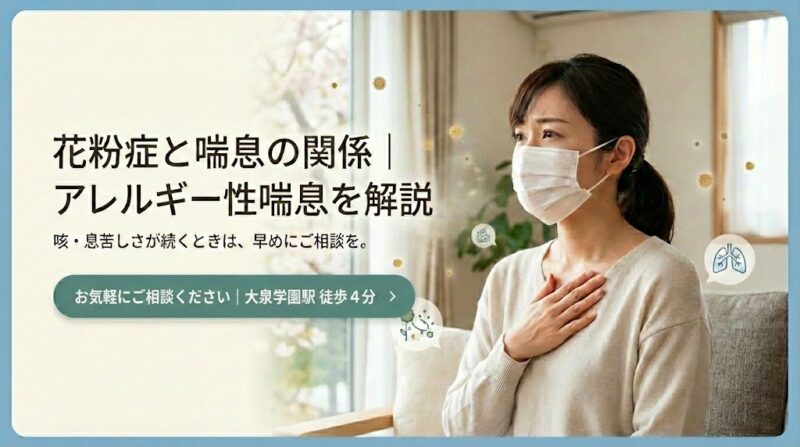 花粉症の時期に咳や息苦しさが続くときは、「花粉症の延長」と決めつけず、呼吸器・アレルギーの視点で相談できる医療機関に早めに受診するのがおすすめです。