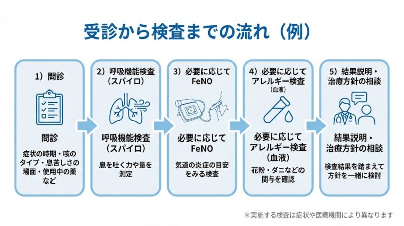 4. 必要に応じて検査(呼吸機能検査、アレルギー検査など)