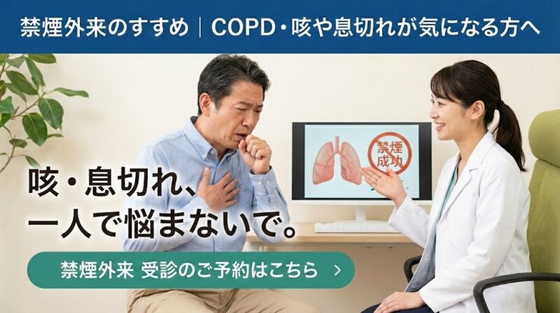 咳や息切れが気になる方は、禁煙と同時に呼吸器の状態確認も含めて相談できるため、早めの受診が安心につながります。